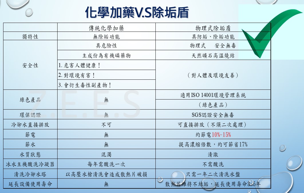 節能:可以有效地控制冷卻塔中的水質,防止水垢和沉積物的形成,從而提高冷卻效率, 降低趨近溫度。這將降低能源消耗,節省您的用電成本。