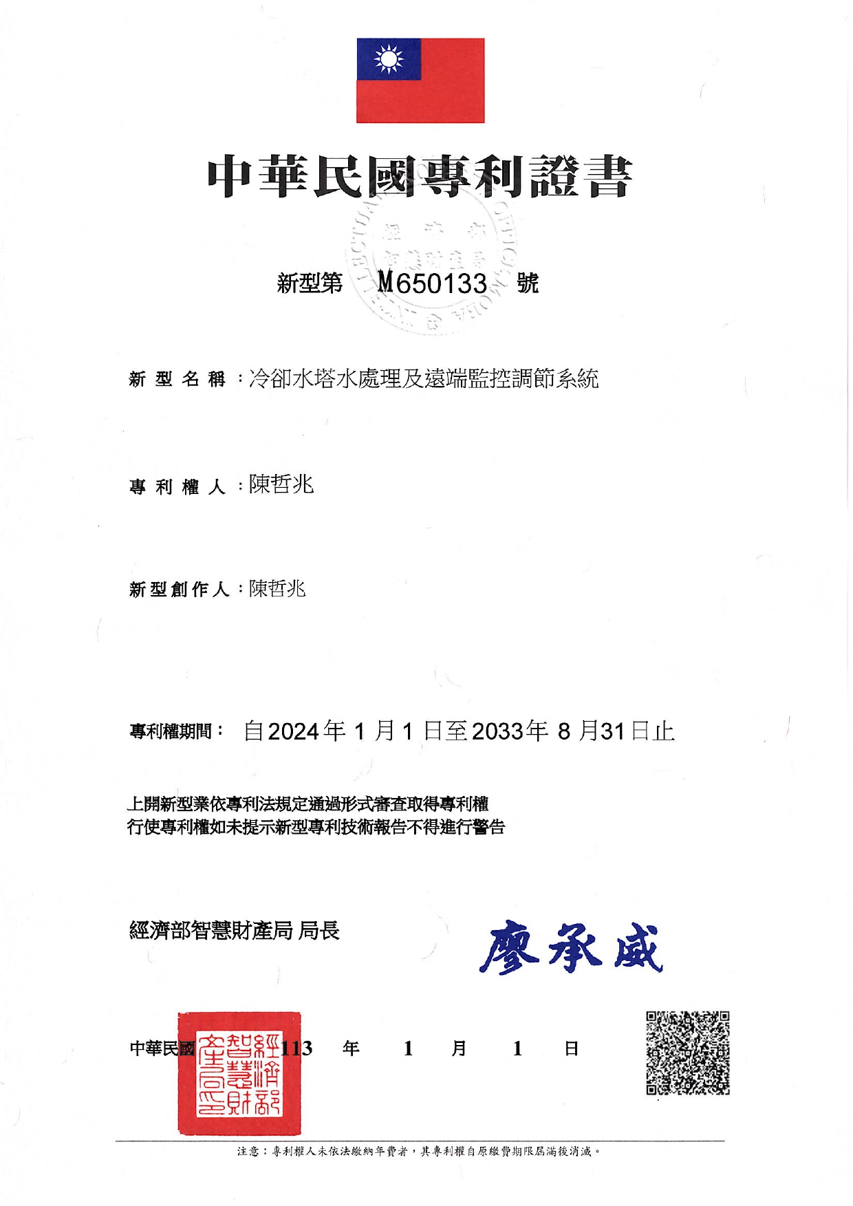 一無線通訊單元, 水質監控單元量測冷卻水盤之pH值, 溫度, 電導度, 總溶解物質及總鹽度, 控制單元可依照